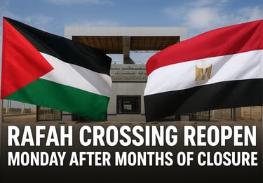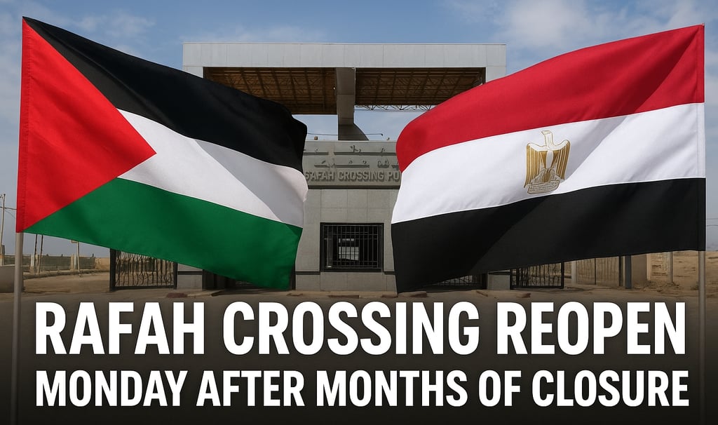 The Rafah Crossing between Gaza and Egypt reopens Monday, easing Gaza’s humanitarian crisis after months of closure. Latest update 18 October 2025.