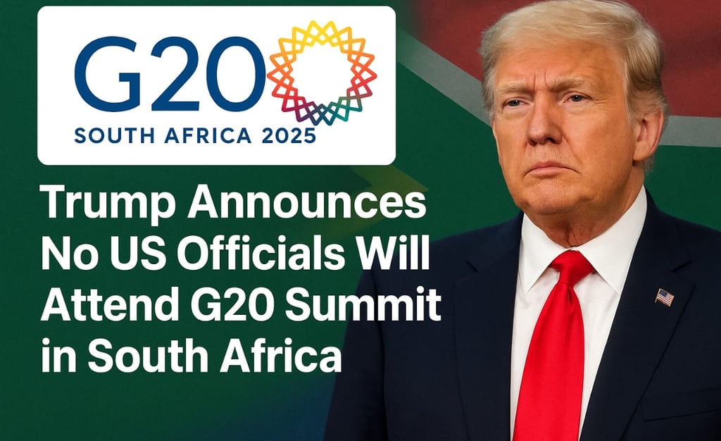President Trump announces no US officials will attend the G20 Summit in South Africa, citing concerns over treatment of white farmers.